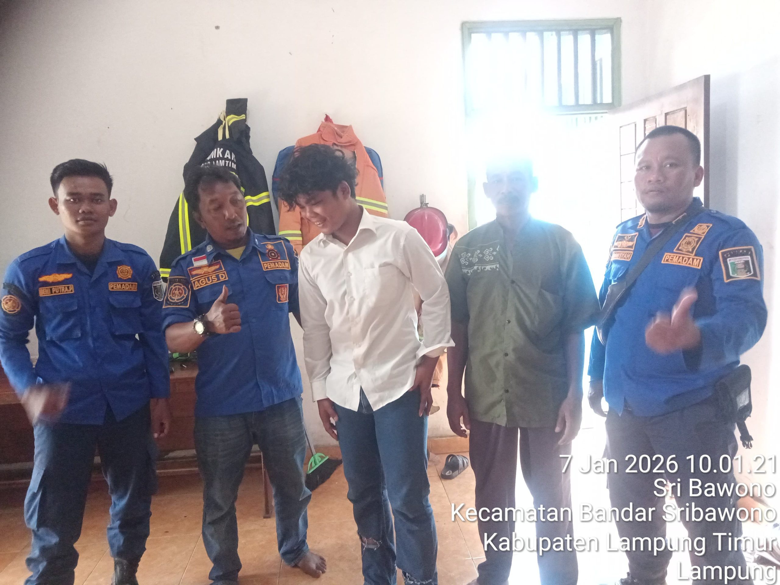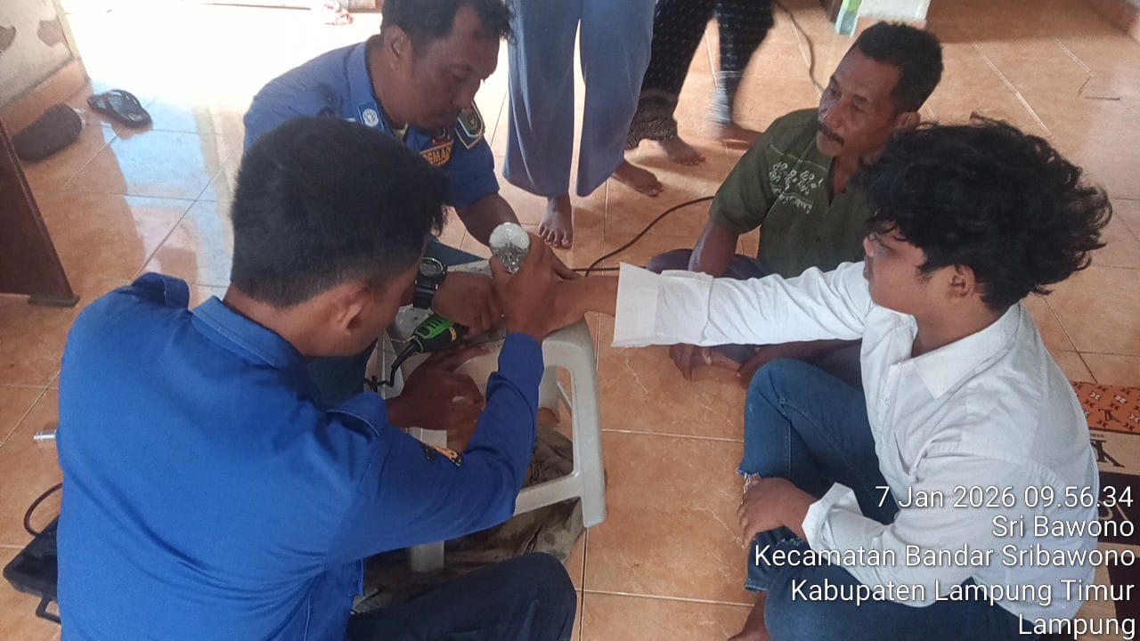 Lampung Timur — Petugas Pemadam Kebakaran (Damkar) Pos Zona Sribhawono kembali menunjukkan pelayanan cepat dan humanis kepada masyarakat. Seorang warga bernama Imanudin (20), asal Labuhan Maringgai, datang ke Pos Damkar Zona Sribhawono pada pukul 09.20 WIB, didampingi orang tua dan kakaknya, untuk meminta bantuan pelepasan cincin yang tersangkut di jari manis tangan kanan.Imanudin mengeluhkan cincin tersebut tidak dapat dilepaskan karena jarinya telah mengalami pembengkakan selama kurang lebih empat bulan, sehingga dikhawatirkan dapat menimbulkan risiko kesehatan apabila dibiarkan lebih lama.Menanggapi permintaan tersebut, petugas Damkar langsung melakukan penanganan dengan prosedur aman dan profesional. Proses evakuasi cincin dilakukan secara hati-hati menggunakan peralatan rescue ringan agar tidak menimbulkan luka pada korban.