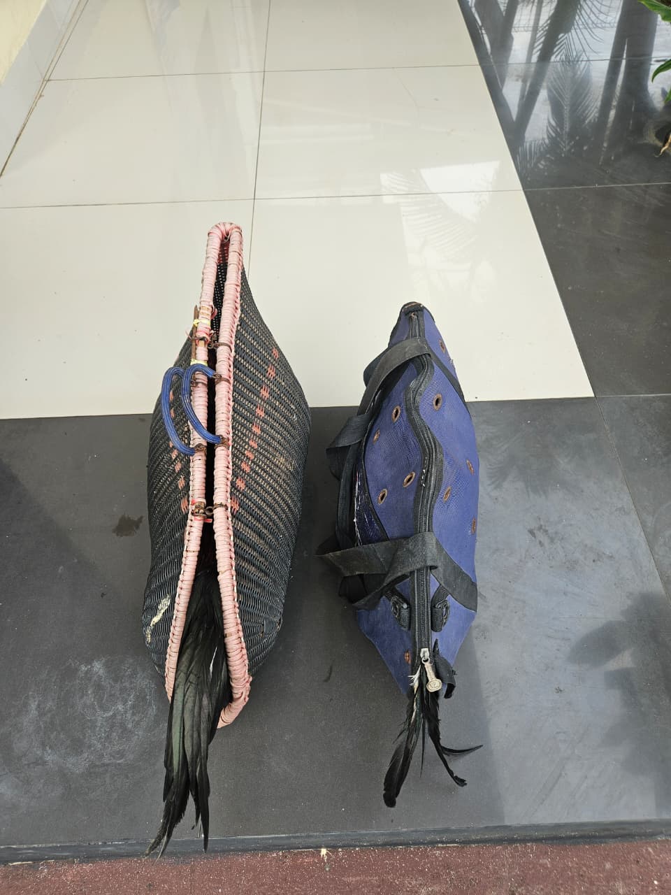 Dalam pengungkapan ini, petugas juga berhasil mengamankan sejumlah barang bukti, di antaranya dua ekor ayam jantan aduan berbulu merah hitam, dua buah kiso (tas ayam) masing-masing berwarna biru dan hitam lis merah, empat buah kurungan ayam, satu arena sabung ayam (geber) warna hijau, dua buah karpet sebagai alas arena, satu kursi lipat warna hitam, satu bak air, dua buah busa untuk memandikan ayam, serta uang taruhan berupa satu lembar pecahan Rp100.000 dan delapan lembar pecahan Rp50.000.