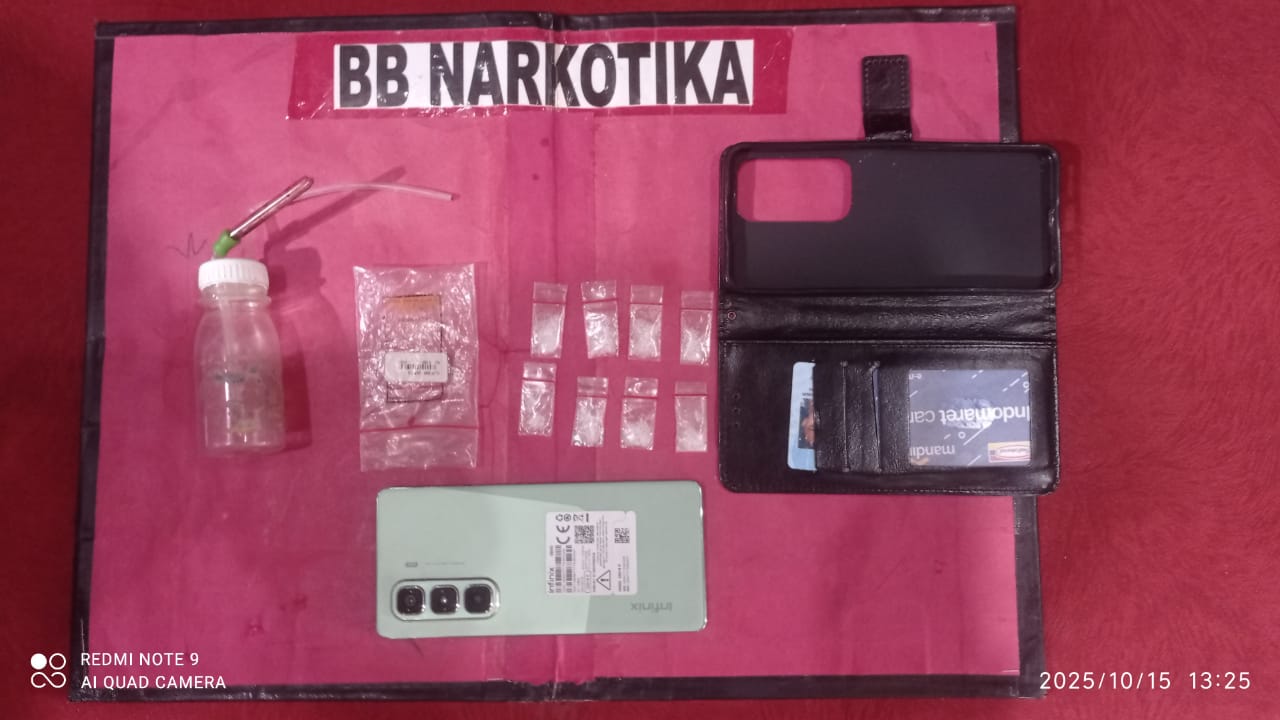 Dari hasil penangkapan terhadap kedua pelaku, polisi berhasil menyita sejumlah barang bukti antara lain 1 bungkus kotak rokok kosong berisi selembar kertas yang berisi biji, batang, dan daun kering diduga narkotika golongan I jenis ganja, 1 buah toples warna putih berisi biji kering yang juga diduga ganja, 2 unit handphone android, 1 bungkus plastik klip bening ukuran sedang berisi 8 bungkus kecil klip bening berisi kristal putih diduga sabu-sabu, 1 perangkat alat hisap sabu (bong) yang terbuat dari botol plastik, serta 1 buah casing polos HP warna hitam.